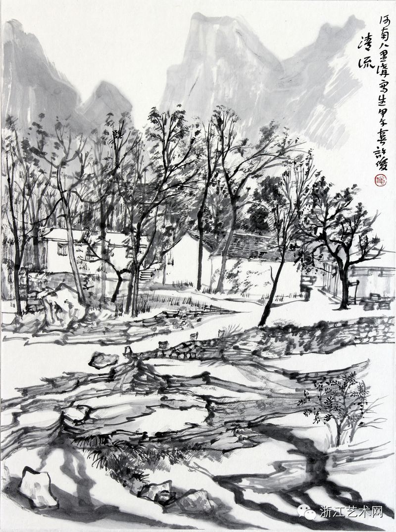 刘荣,《京郊冯家峪写生》,纸本·水墨,45cm×68cm,2013年