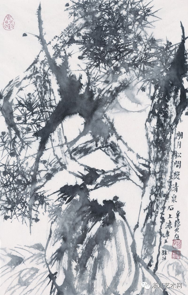 卓鹤君,《明月松间照 清泉石上流 》,纸本·水墨,73.5cm×47.5cm,2014年