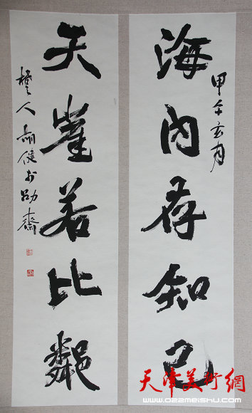 天津南开大学东方艺术系客座教授、书法家胡健书法作品:海内天涯联(《说文》无涯字,《新附》载之,崖本义水岸,引申义为边际。)