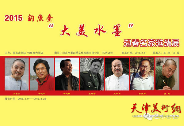天津美术网讯 2月9日下午14:30,由王茂、汪敏联合策展,荣宝斋画院主办,钓鱼台大酒店、北京水墨四季文化发展有限公司、艺术公社承办的“2015钓鱼台·大美水墨——迎春名家展”将在位于北京市海淀区三里河路49号的钓鱼台大酒店开幕。展览将展出画家孟庆占、王家训、李晓军、李晓柱、张立奎、乔宜男、张宜的水墨画作品,展期将至2月25日。