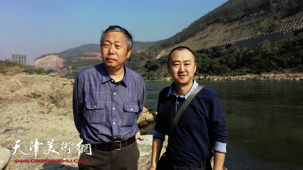 图为柴博森与老师李翔在采风作品前