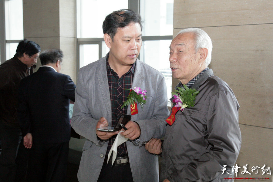 “董云华山水画展”在今晚传媒大厦开展,图为纪振民、徐庆举。