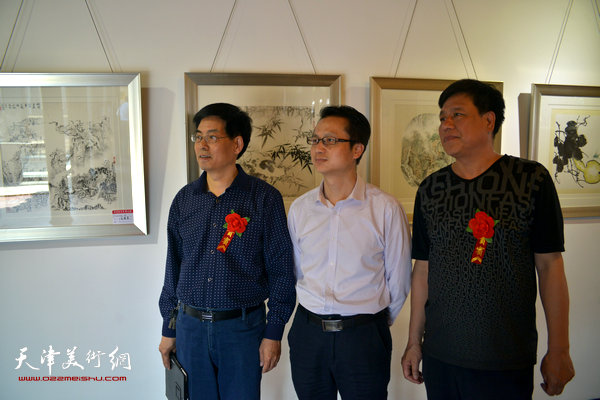 臻境微观-津门书画家小品精品展在杨柳青开展,图为韩文来、丁玉来、高天武在画展现场。