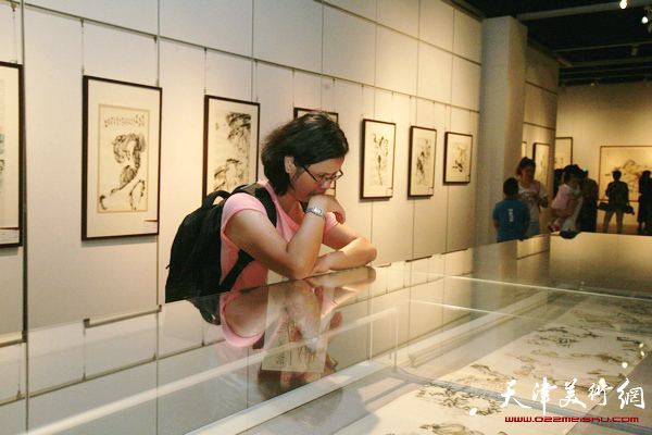 “虎痴”李平野先生作品纪念展在天津美术馆举行,图为曹秀荣在展览现场。