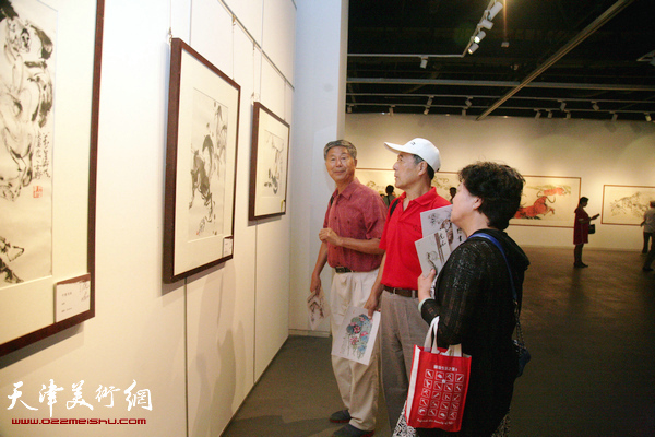 “虎痴”李平野先生作品纪念展在天津美术馆举行,图为史振岭、王峰、李学亮在展览现场。