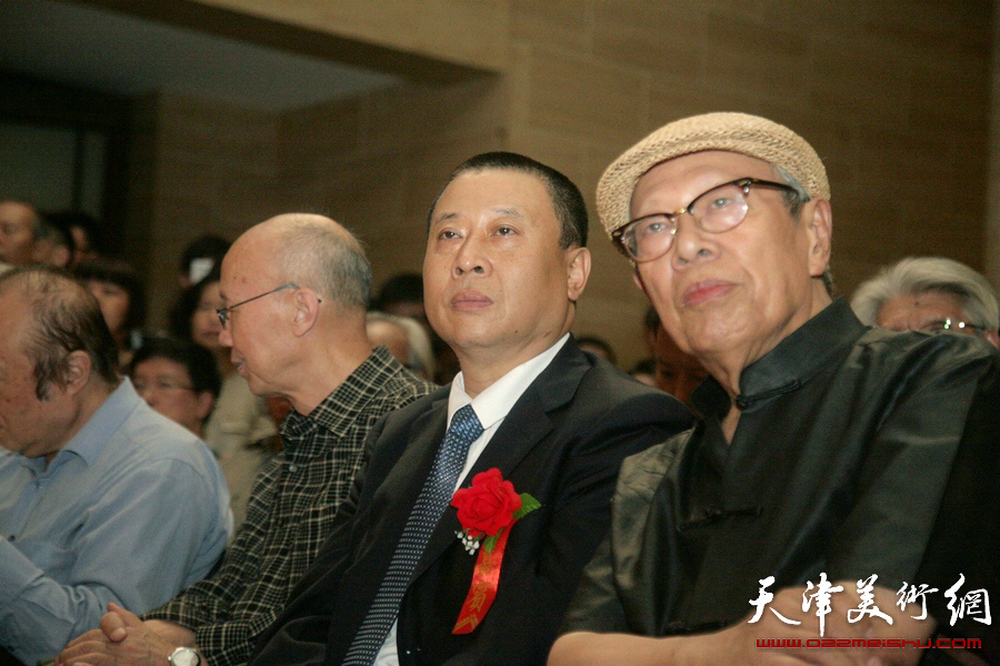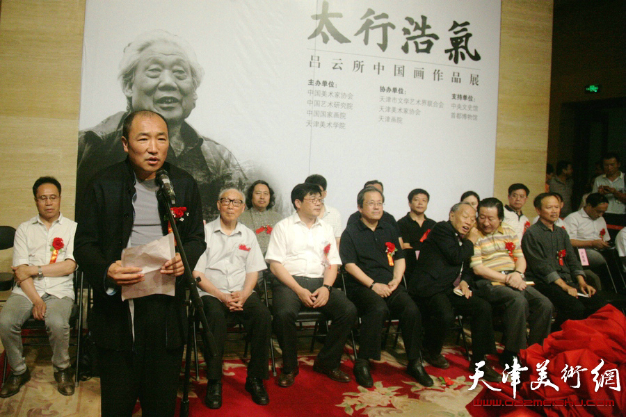 太行浩气—吕云所中国画遗作展在中国美术馆举行,图为天津美协主席王书平主持开幕式。