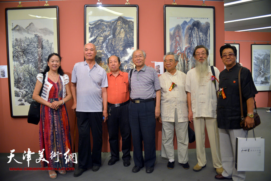 首届天津市美术家协会山水画专业委员会山水画展览在天津美术馆开幕,图为左起:徐燕、韩征尘、韩祖音、蔡金顺、苏锡超、刘克仁、曲学真在展览现场。