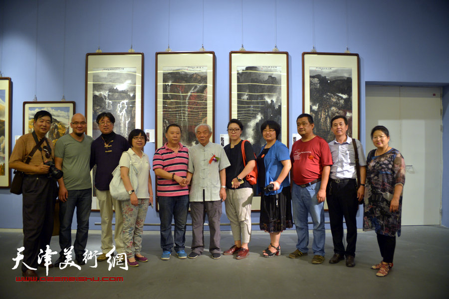 首届天津市美术家协会山水画专业委员会山水画展览在天津美术馆开幕,图为纪振民、吕大江、张芝琴、李宝众、吕立、范馨心、祁国明、魏景忠等在展览现场。