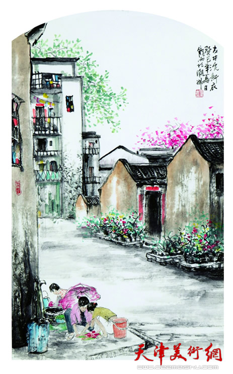 [庞雨]:是的。中国画自唐以来,诗中有画,画中有诗是一个传承。诗入画和画中题诗不是单纯的一种形式,也非形而上的东西,一首好诗,说它有意境,那就是说它像一幅画生动的画面;而一幅好画说它优美生动那就是说它像一首诗。诗画之问的相得益彰,精神往来 ,也就是艺术得到升华的那一部分,很难得的。文学和艺术之间的关系,各自有它的定义和社会属性和社会功能,这是一个太过专业的理论问题,我觉得文学和艺术它们共同包含的是人类社会的真善美,是影响我们思想形态的表现形式,是语言艺术和行为艺术的结合体。