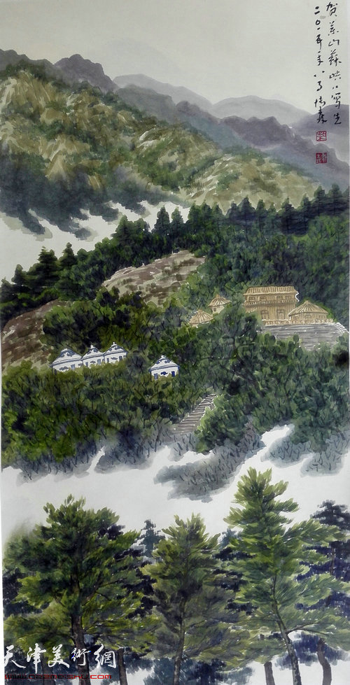天津美术网讯 天津画家柴博森与中国美协会员、中国青绿山水画院副院长顾大明、中国美协会员、中国国画家协会常务理事贺斌、中国美协会员、海军创作室画家陈玉林、中国美协会员、北京海淀美协外联部主任郭金服、中国美协会员、江苏南通画院院长邵连一行六人应银川电视台之邀,日前来到贺兰山进行了为期七天的写生,每人都创作了多幅反应当地题材的写生作品。