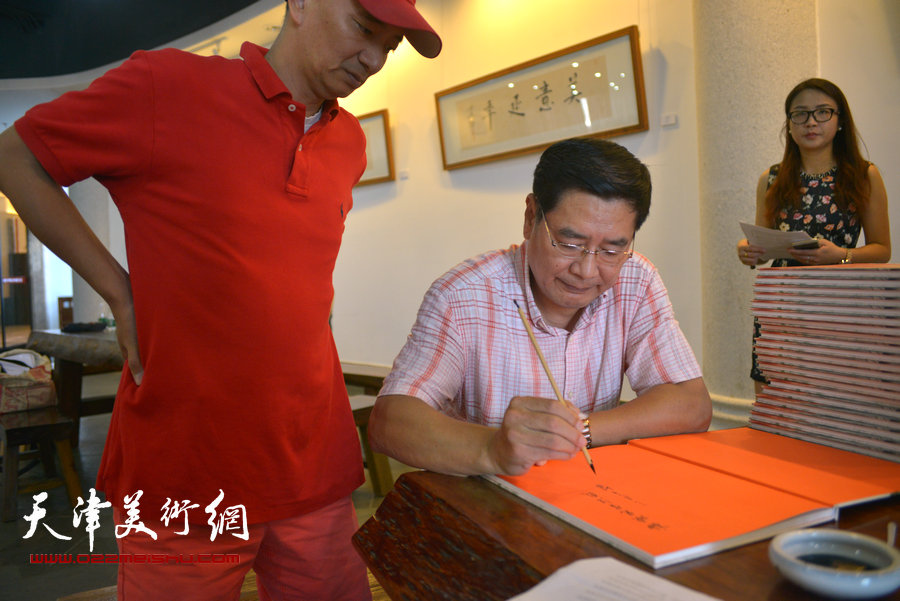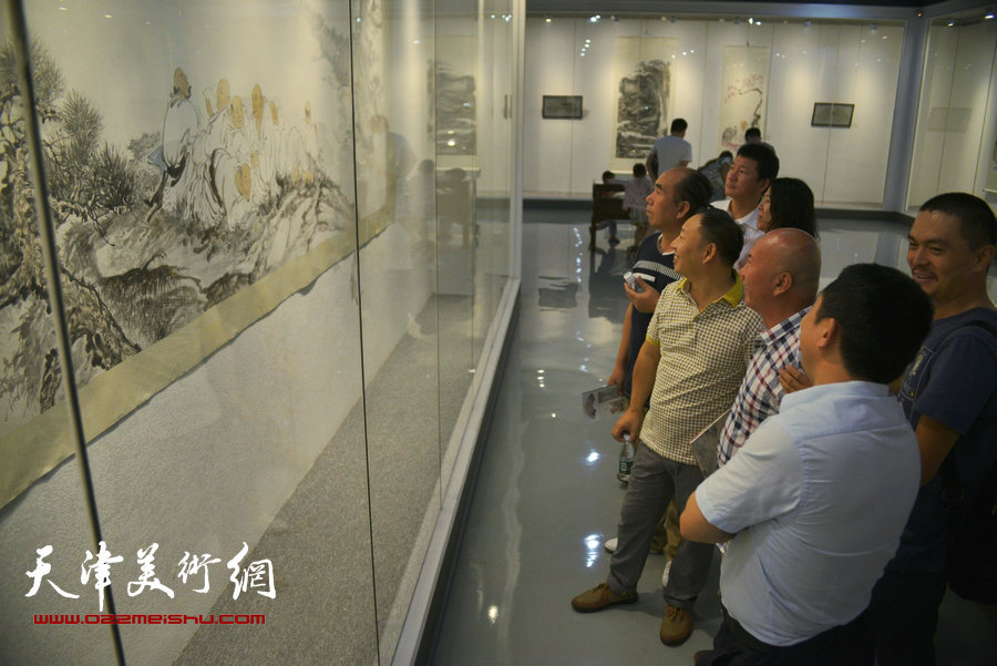 张佩钢、丁凤英与在粤工作的天津老乡在画展现场。