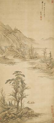 最后一部分“金陵余绪”,共展出四件作品,即宗言的《溪桥茅亭图》、邹坤的《溪山雪霁图》、樊云的《米家山水图》、王蓍的《山水图》,为金陵画坛后期绘画创作的具体写照。展品如此稀少,也从一个侧面反映出金陵画坛逐渐趋向沉寂的历史状况。