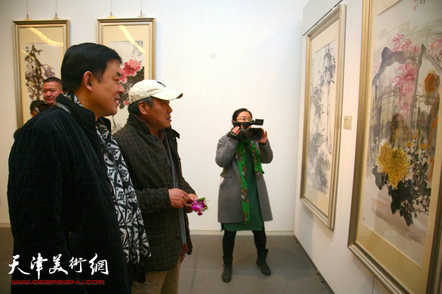 天津市文广局社文处处长朱义海,天津市群艺馆馆长李戈,天津市美术家协会副主席、天津画院常务副院长范扬,天津市美术家协会副主席史振岭,天津市美术家协会秘书长李耀春,天津市书法家协会秘书长冉繁英,天津市美术家协会顾问王书朋,天津市美术家协会展览部主任潘津生,津南区政协主席刘宝忠,津南区委副书记刘惠,津南区委常委、宣传部部长窦双菊,津南区人大副主任刘万春,津南区副区长韩凤敏,津南区政协副主席刘恒志,以及天津著名画家马寒松、姬俊尧、张运河、郭凤祥、王卫平、杨沛璋、刘文生、赵俊山、陈之海、翟洪涛、阚传好、张洪春、卞昭宏、安士胜等出席了展览开幕仪式。