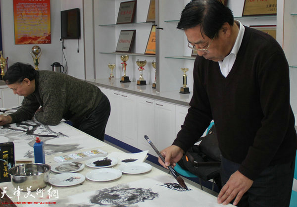天津美术网讯 新年伊始,万象更新。天津著名画家郭凤祥、赵俊山、冯字锦、翟洪涛等日前来到千年古镇杨柳青采风,并在高天武工作室举行辞旧迎新文化交流活动。