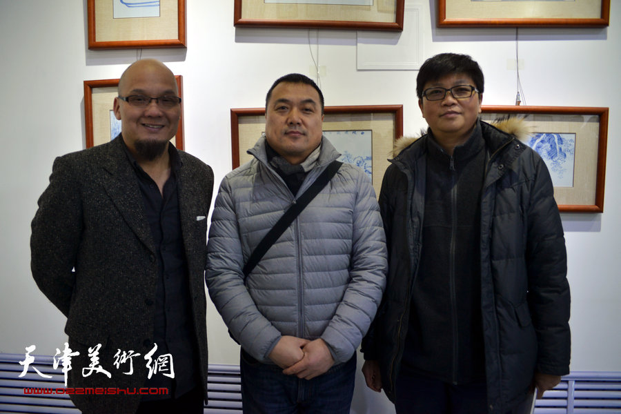 王秀琪、杨建国、杨永茂在瓷板画展现场。