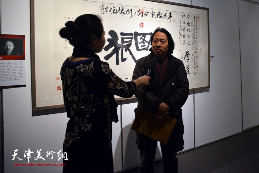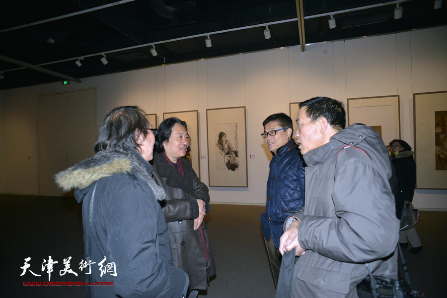 贾广健、张桂元、赵国经、王美芳在画展现场。