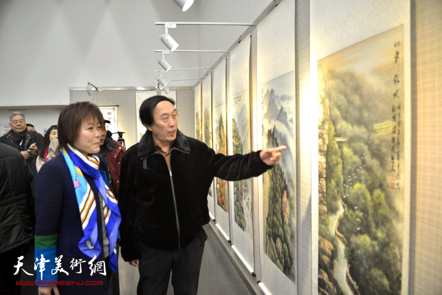 河东区政协副主席张春跃、天津市老年书画研究会秘书长张俊屹,天津市老年书画研究会、市政协书画研究会常务理事李清和,天津美术学院原副院长高振恒,天津美协副主席琚俊雄,天津美协山水画艺委会名誉主任纪振民,主任姬俊尧,山水画家孙长康,天津美院教授王振德,天津人民美术出版社原编审邢立宏,天津政协书画研究会会长刘建华,天津画院原副院长郭凤祥,天津师范大学书画院院长陈元龙,天津国际民间工艺美术大师李岳林,天津图书馆副馆长赵彦龙、河南省豫商会副会长宋福金等领导嘉宾、书画界及媒体朋友一百余人出席了开幕式。