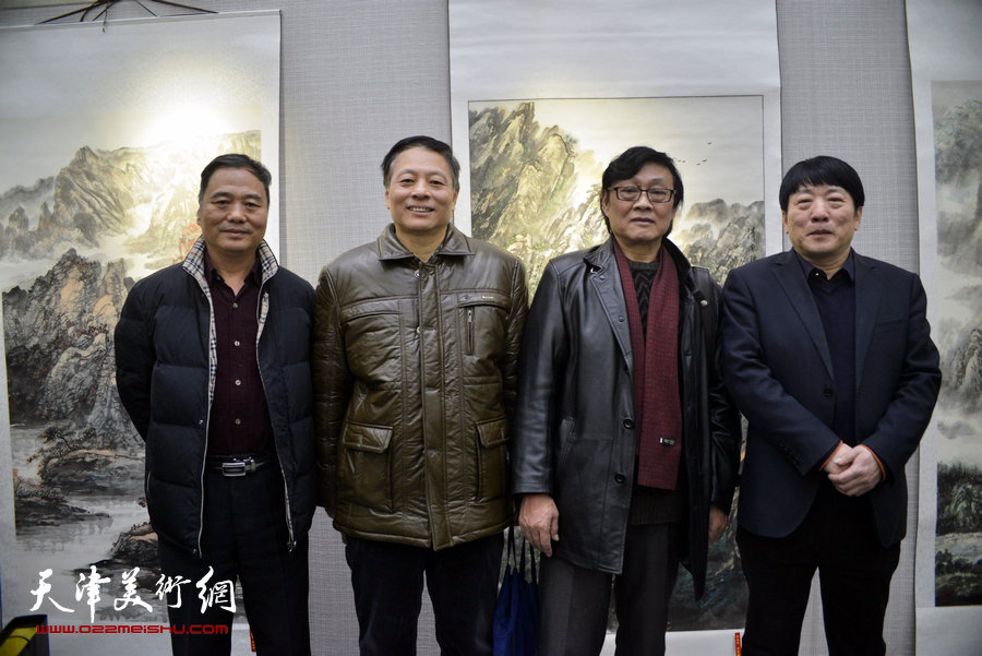 姬俊尧、邢立宏、董云华、闫维远在画展现场。