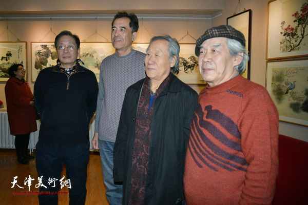 姬俊尧、张志连、赵承锐、周煦英在画展现场。