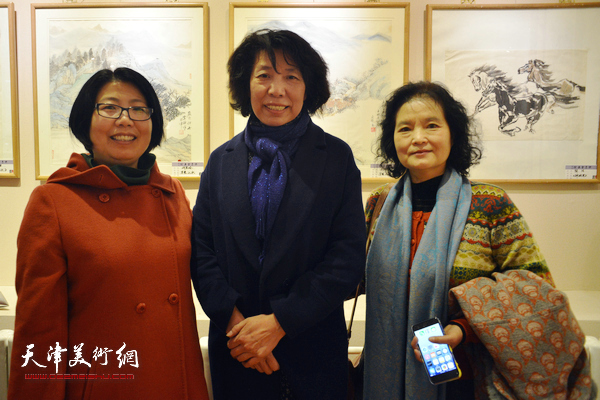 天津市美术家协会山水画专委会名誉主任、著名山水画家、天津美院女同学会顾问纪振民,天津市美术家协会山水画专委会主任、著名山水画家、天津美院女同学会顾问姬俊尧,中国楹联书画院常务副院长、著名书画家、国墨书画馆顾问、天津美院女同学会顾问赵士英,著名画家、天津美院女同学会顾问陆福林、曹留夫,著名画家刘凤棋、李风雨、张志连、王维卿,国墨书画馆馆长赵承锐,常务副馆长周煦英,副馆长丁美涵等出席了展览开幕仪式。姬俊尧、赵士英、张秀茹、赵承锐为天津美术学院女同学会活动基地揭牌。仪式由天津美院女同学会副会长黄雅丽主持。