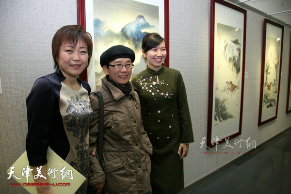 李澜与天津市书法家协会主席唐云来、市美术家协会副主席孟庆占在展览现场。