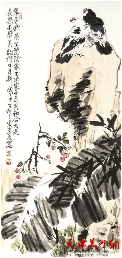 [卢贵友]:不,在中国,就在咱们的南开大学和商业大学。他们主修语言,另一方面就是学习中国的传统文化,他们对中国的文化非常有兴趣。我给他们上绘画和中国美术史两门课,教了十几年的课,学生们都还很喜欢我的课。最近师范大学的韩石老师给我写了一篇小文章,给我看了之后我觉得韩老师真的非常了解我,他称我为“隐者”。我的心态确实非常好,我就把画画当做一种陶冶情操或者是养老,快乐的度过后半生的一种游戏。所以我对物质的一些东西看的比较淡,我在绘画上是下过功夫的,刚才讲的我的绘画以墨为主这是一个特点,整体风格上是受梁崎先生的影响比较大,追求苍劲、老辣的感觉,这点也符合我自身的性格。我希望我创作的作品给别人看了能带来轻松的感觉,同时静心。所以我最近这几年创作的作品都是以墨色为主,创作了一些表现春夏秋冬的作品,再有一些大写意的画。我的有些作品在社会上展出,在媒体上发表从反响来看,我觉得大家还是很认可我的,这对我也是一种鼓励。今年的《国画家》杂志用三到四页的版面介绍了我,编辑跟我讲反响挺好。