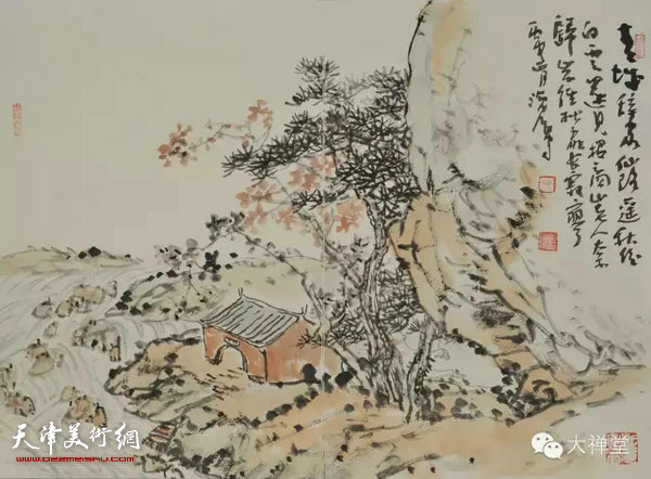 每遇春秋佳日,余常将历代名帖陈于案牍床头,时时诵览临习;或闲居以理气,悬名画于中堂,披图幽对,寄兴于烟霞,继而化为笔底之长啸。亦喜率弟子数人,游心骋目于山水之间,南涉云贵,北叩玉关,登峨眉,问道终南,适甘南塞北,观五岳,访黄山、九华、天柱三山。雨夜、秋梦、古寺、名山、草木、飞禽种种意象,种种禅意皆形诸于书画,或谓为禅意画,或谓为文人画、士夫画,或谓为原乡情结,余亦莫辨。得之于心,应之于手耳!
