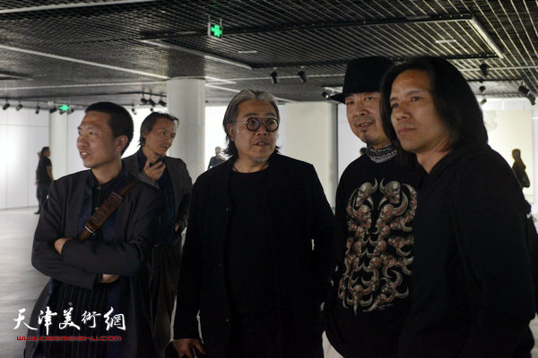 王爱君与郭雅希、夏可君、肖冰、白洪等来宾在展览现场。