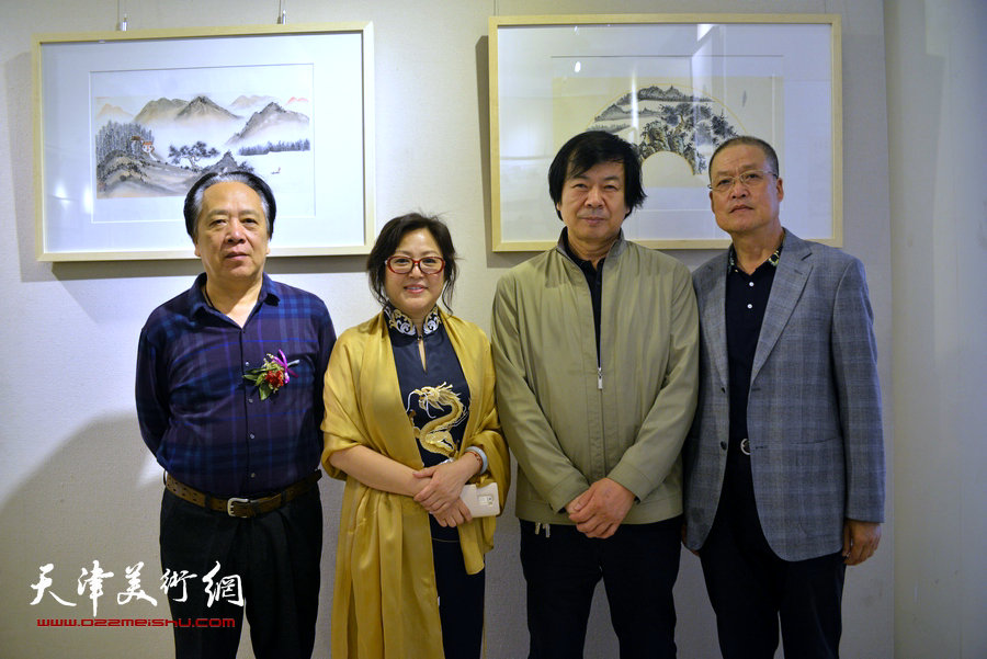 左起:纪荣耀、冯海娇、史振岭、胡振兴在画展现场。