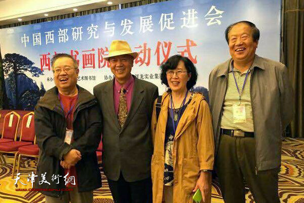 天津美术网讯 中国西部研究与发展促进会、西部书画院成立大会及画院启动仪式于2016年5月9日在安徽黄山太平国际大酒店召开。成立大会上由西促会领导讲话并向书画院院长、理事颁发聘书,为天山、黄山创作基地揭牌。大会宣读了中国美术家协主席刘大为的贺信。听取了2016年中国西部研究与发展促进会、西部书画院工作报告。参观祥龙美术馆,並进行艺术交流、考察采风。