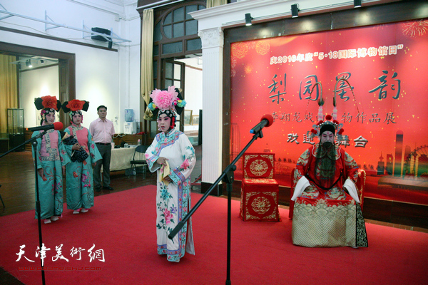 天津美术网讯 为迎接2016年度“5.18国际博物馆日”,弘扬国粹,传承经典,由天津西洋美术馆、翔龙书画院联合主办的“梨园墨韵—李翔龙戏曲人物作品展”今天(5月16日)在西洋美术馆开幕。此次展览共展出李翔龙先生精品戏曲人物作品80余幅。为了配合此次展览活动,20余名京剧票友齐聚展览现场,演出京剧名段。优美的唱腔与展览作品交相辉映,相得益彰,既增加了观者与美术馆之间的互动,又进一步增强了书画爱好者对作品的了解和兴趣。