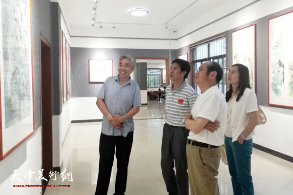 黄宾虹美术馆长长汪金木与参展艺术家刘绍斌、刘金标、张守堂、马俊达在展览现场。