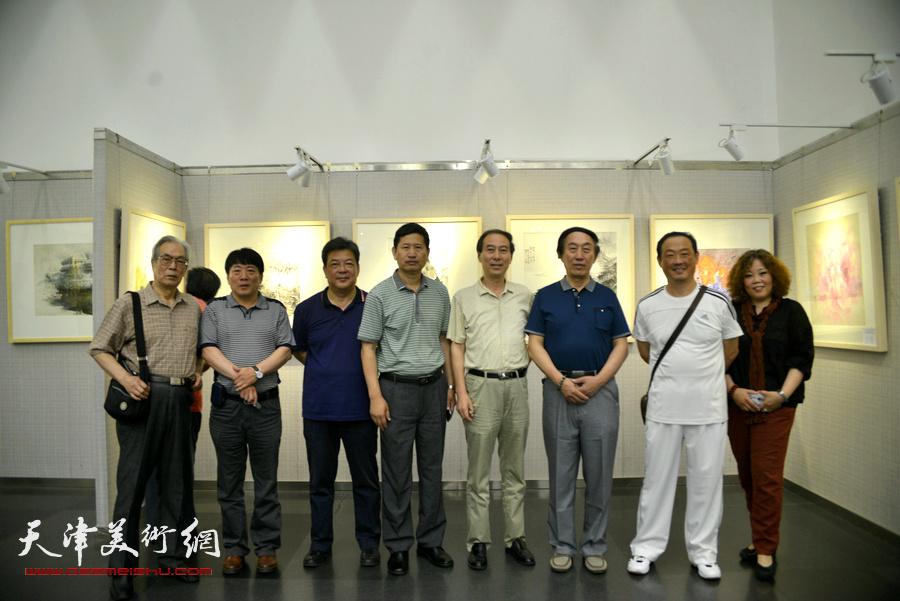 左起:侯金立、黄雅丽、李英杰、赵新立、田秀云、韩君在画展现场。