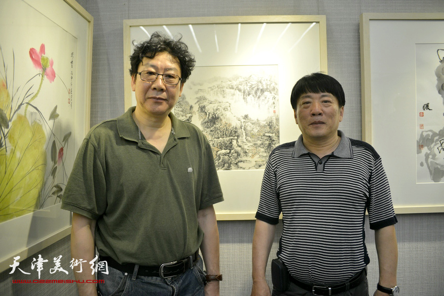 王超、高原春、王大奇、武颖萍等在画展现场。