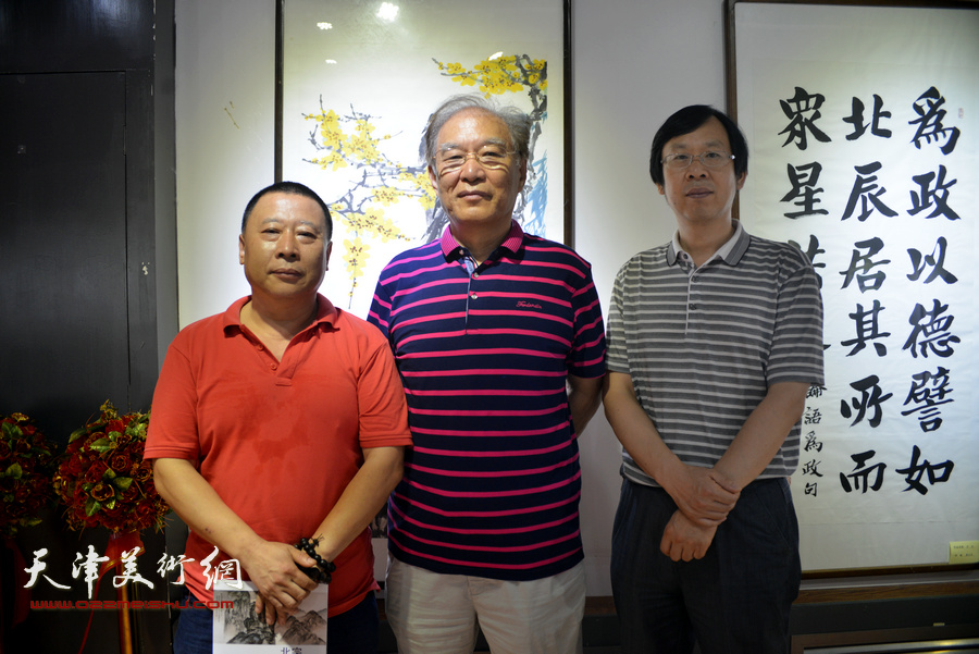 左起:吕大江、何延喆、路洪明在画展现场。