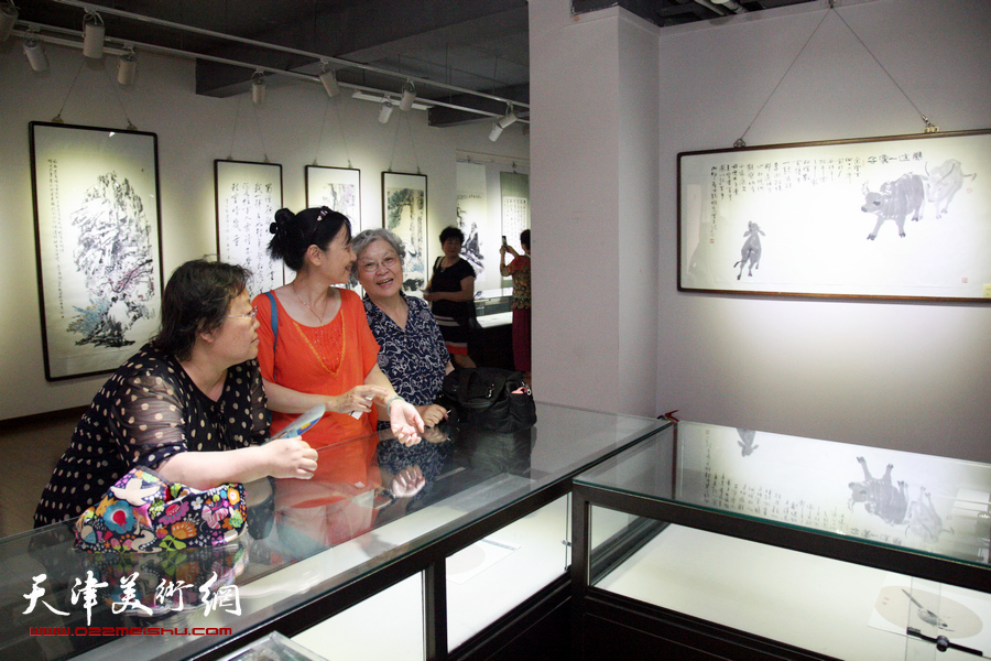 贺建国、秦克强、郭金标、余澍梅、周志芬等在画展现场。