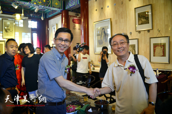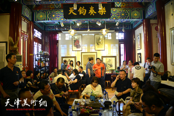 天津美术家协会主席王书平,中国国家画院艺委会委员、天津画院院长贾广健,天津画院党组书记张桂元,天津画院办公室主任张春燕,天津广播电视台公共频道总监侯津淼,天津城投建设崔总,中国贵金属交易协会会长陈谅,天津普邦集团有限公司董事长卢建辉,天津市华夏盛鑫不锈钢有限公司苏建,天津古文化街管委会主任肖强、天津市玖洋集团有限公司董事长、弘一书画院理事长郭卫兵,天津中海营集团有限公司董事长李全索,天津畅想时空娱乐有限公司总经理马国成,天津津酒集团董事长王富生,古井贡酒天津徽兴商贸有限公司总经理何光辉,天津尚品艾兰文化传播有限公司总经理马增,天津奥源汽车零部件有限公司董事长朱家园,嘉顺商贸有限公司董事长刘建立,浙江台州商会会长金敬才,金元宝滨海国际购物中心董事长金红兴,天津尚品佳烟酒销售有限公司总经理王总,敬一堂药业有限公司总经理张岩,爱点保健有限公司总经理王总,,汤加英联邦经济文化交流协会主席陈春风,北京艺术家与企业家杂志社社长,汤加英联邦经济文化交流学会白托雅,福建省郑和文化交流协会副主席施紅海,汤加英联邦经济文化交流学会洪素荣,天津古筝协会会长吕秀英等出席了画展开幕仪式。