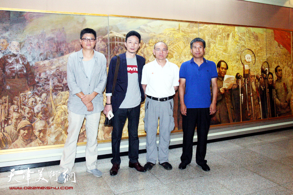 天津西洋美术馆馆长李响(左二)在画展现场。