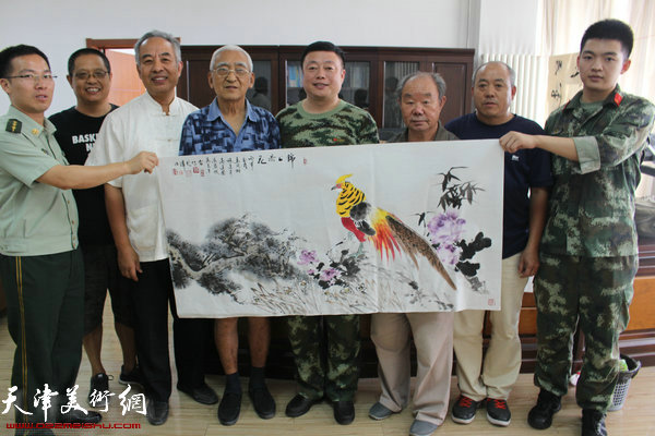 天津市聚贤书画院院长马凤柏与子弟兵。
