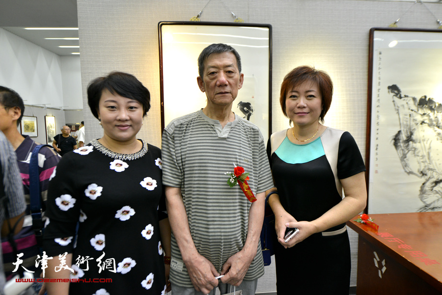 左起:王秀琪、杨德树、田均清在画展现场。