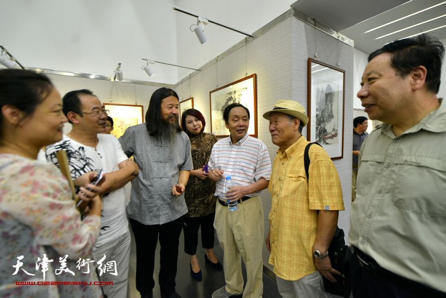 孙长康、张胜、佟有为、梁旭华、周琴玉等在画展现场。