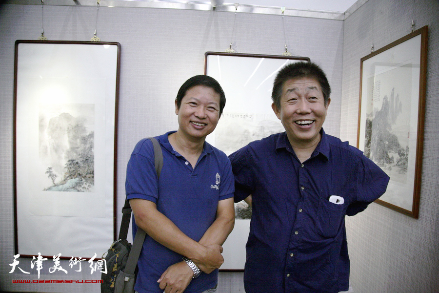 马志明、王俊生在画展现场。