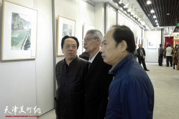 左起:刘学峰、杨德树、陈福春在画展现场。