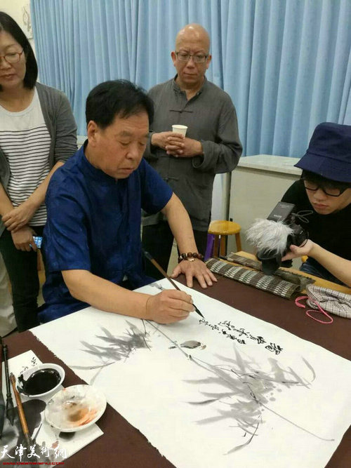 天津王东生等六位画家在“两岸艺术家国画座谈会”上。