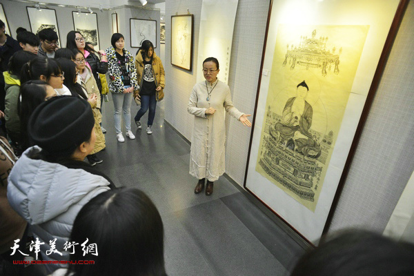 唐睿与她的天津美院99届同学魏云飞、王润、鲁素凡在画展现场。