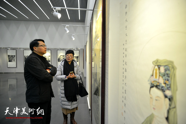 何宁、唐睿、杜小龙与来宾在画展现场。