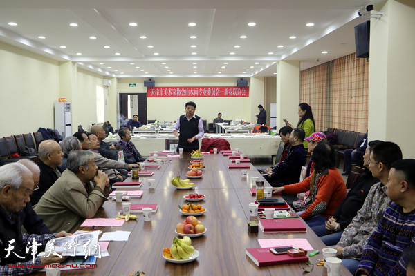 天津美协山水画专委会新春联谊会在金带福路文化传播中心召开。