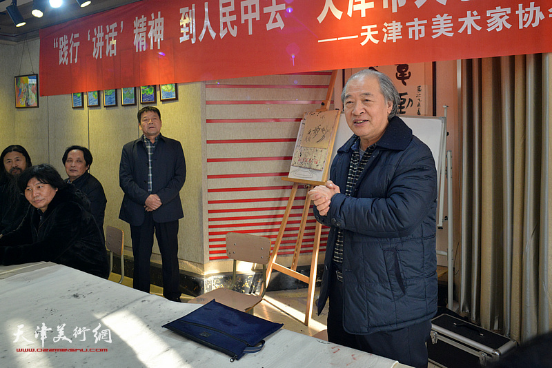 天津美术网讯 今天(1月12日)下午,西青区王兰庄书画院气氛热烈,春意浓浓。一位村民说,“小画室来了大画家。”由天津市文联,天津市美术家协会主办的“践行讲话精神·到人民中去”-天津市美术家协会送文化进万家活动走进西青区王兰庄。