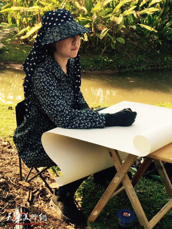 来自天津画院的任欢在此次西双版纳写生中感慨颇多。在她的采风随笔中言道:再次来到版纳植物园,熟悉的草木味道弥散在空气中,小镇,小街,罗嗦江和吊桥,一切如初。海芋、曼陀罗、西番莲、赤苞花……有心的人眼中处处入画,一步一景,不是盲目,而是更能读懂生命的魅力。无论是娇艳的花朵还是大大小小的绿叶都遵循着生命的规律在自己的位置上自在的完成着生命的过程。