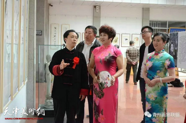 张大功与山东省美协理事、青州市美协主席冯聚成、天津美院青年画家马瑞涛在画展现场参观。